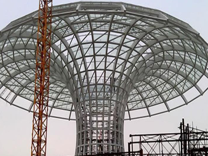 二、球形网架结构因其结构新颖,受力合理,自重轻、用钢量低等优点。如大型体育场馆球形无锡螺栓球网架、公共场馆球形网架、电厂无锡螺栓球网架、水泥工业球形网架、仓储物流球形网架、无锡干煤棚工业球形网架、无锡收费站无锡加油站球形网架、展览中心、影剧院、商场、航站楼、候车厅、工厂无锡车间、仓库、电视塔等球形螺栓球节点网架。国内球形网架结构主要分为:无锡焊接球节点网架及螺栓球节点网架两种。螺栓球节点网架其构件工厂内加工量较大,现场安装便捷,适用于现场工期紧,无锡施工条件、用电量受制约,网架形状复杂、无锡杆件定位困难的异形结构。螺栓球节点球形网架系统基本由无锡杆件、螺栓球、支撑支座等组成。按照节点形式可分为交叉无锡桁架体系、四角锥体系、三角锥体系等。支撑方式多为固定支座支撑。对于大面积、大跨度及有特殊受力或伸缩要求的网架结构可采用橡胶支座、滑移支座、球铰支座等支撑形式,以满足结构自身的受力稳定、均衡,便于内力释放等设计要求。